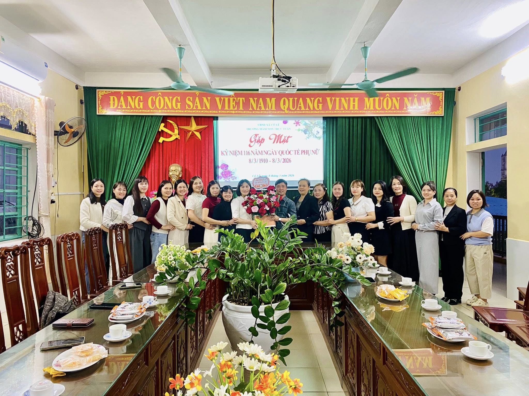 Hòa chung không khí vui tươi, ấm áp của ngày Quốc tế Phụ nữ 8/3, tập thể CB, GV, NV Trường Mầm non Trực Tuấn đã tổ chức buổi gặp mặt thân mật nhằm tôn vinh những người phụ nữ tuyệt vời – những cô giáo mầm non luôn tận tâm, yêu nghề, mến trẻ.